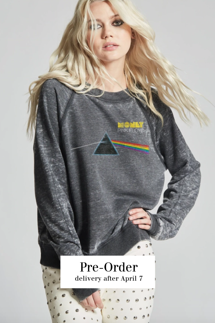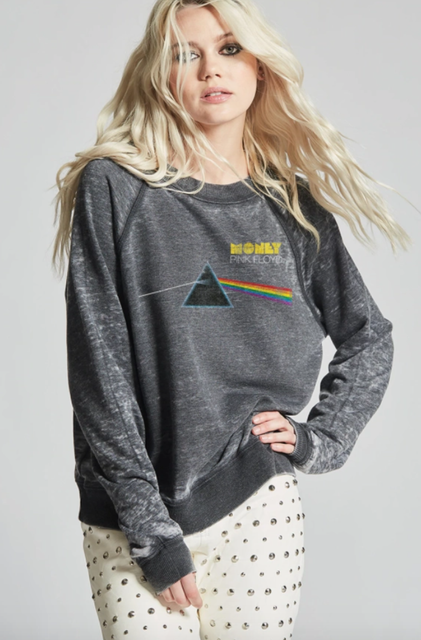 This Pink Floyd "Money" Fleece Sweatshirt in Black is the perfect stylish statement piece to add to your closet, and or any on-trend bohemian style outfit! Giving your look a beautiful element with it's fun "Pink Floyd" graphic design and raw edge detailing. This stylish and breezy top is the perfect piece for any time of year!