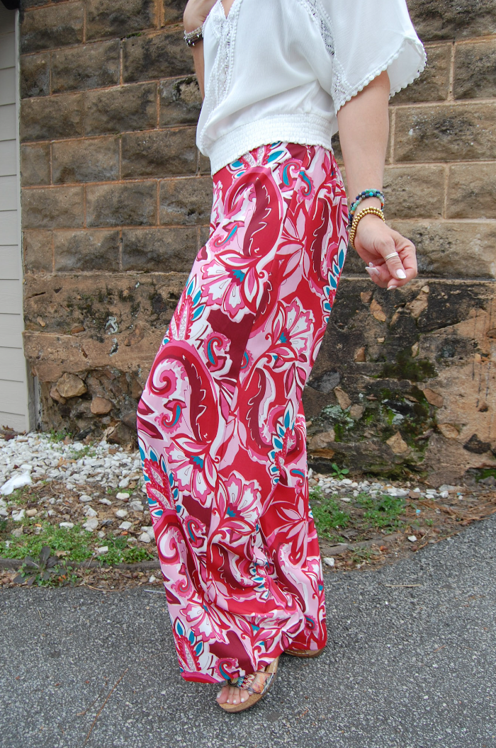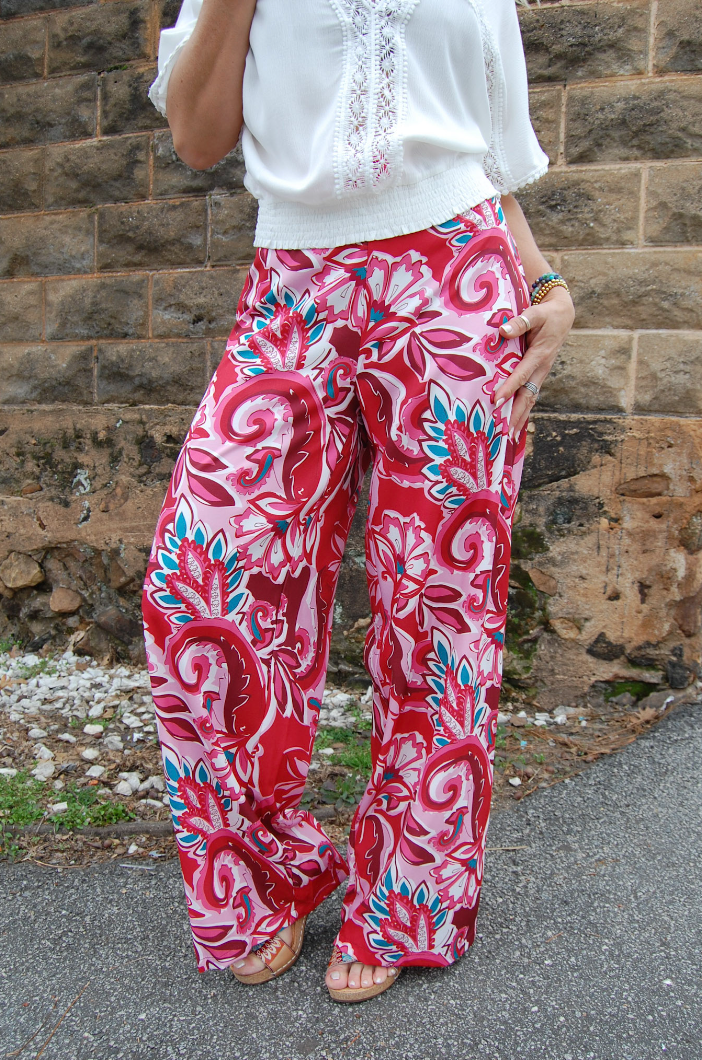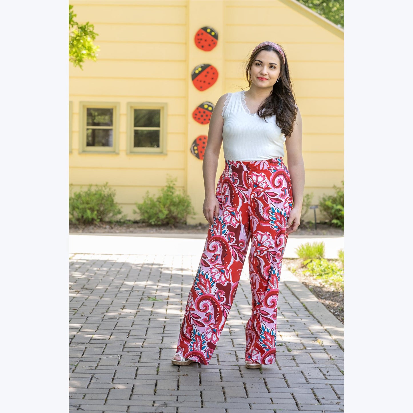 To maintain quality, these Ansley Pleated Pants in Red & Pink are best when hand washed cold, with like colors, and laid flat to dry.