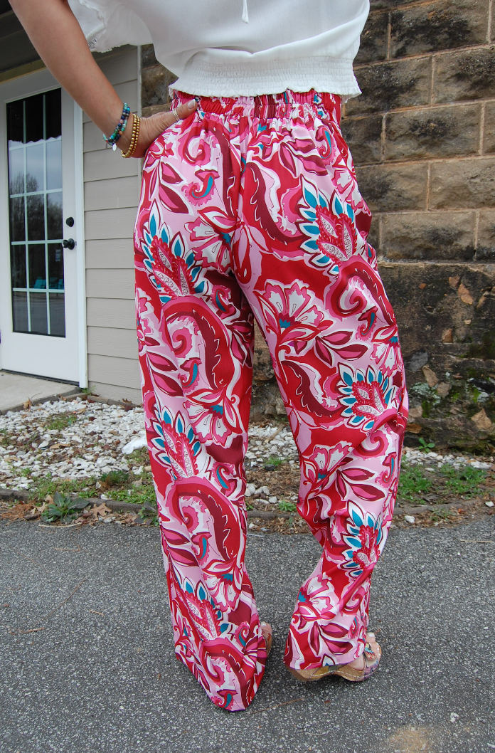 Our Ansley Pleated Pants in Red & Pink are the perfect stylish and statement bottoms to add to your closet, and or any on-trend bohemian style outfit! These loose fit wide leg and breathable pants are the perfect casual staple for your closet!