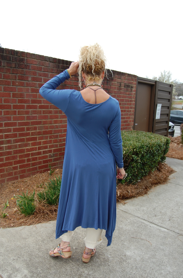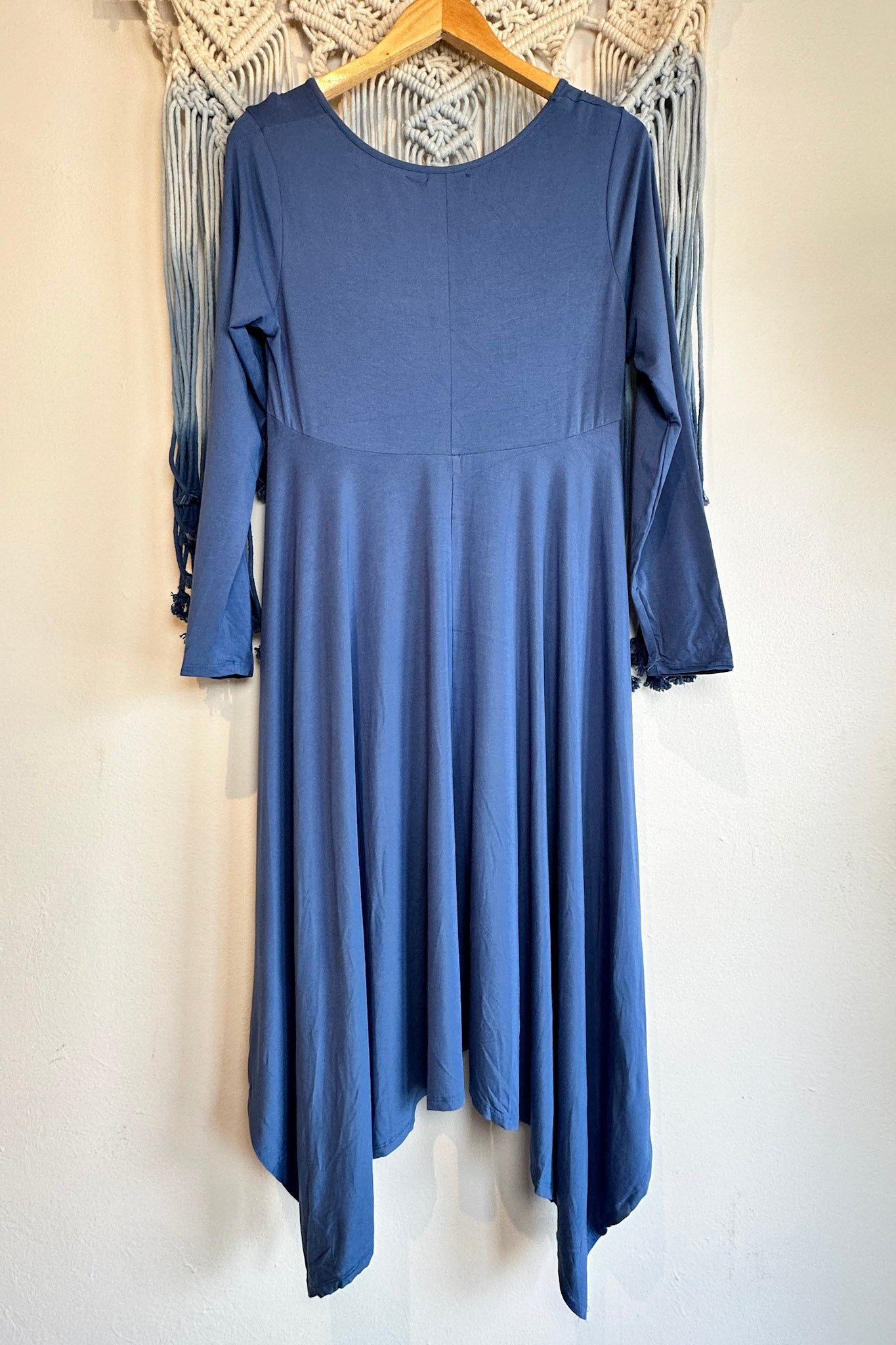 The Daria Drape Dress in Blue will be your favorite wardrobe staple! This dress features a cowl neck and long drape detail! Paired with flats or heels, it's an elegant option for day or evening.