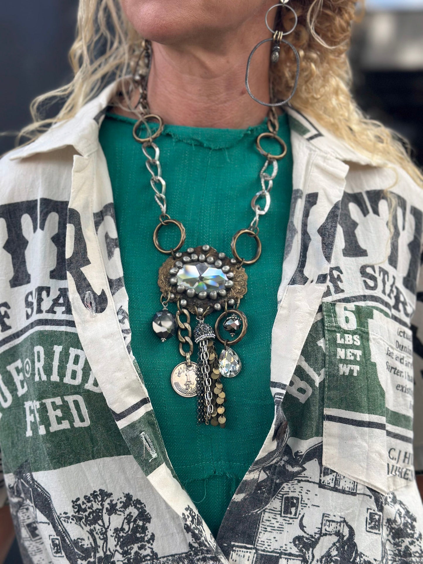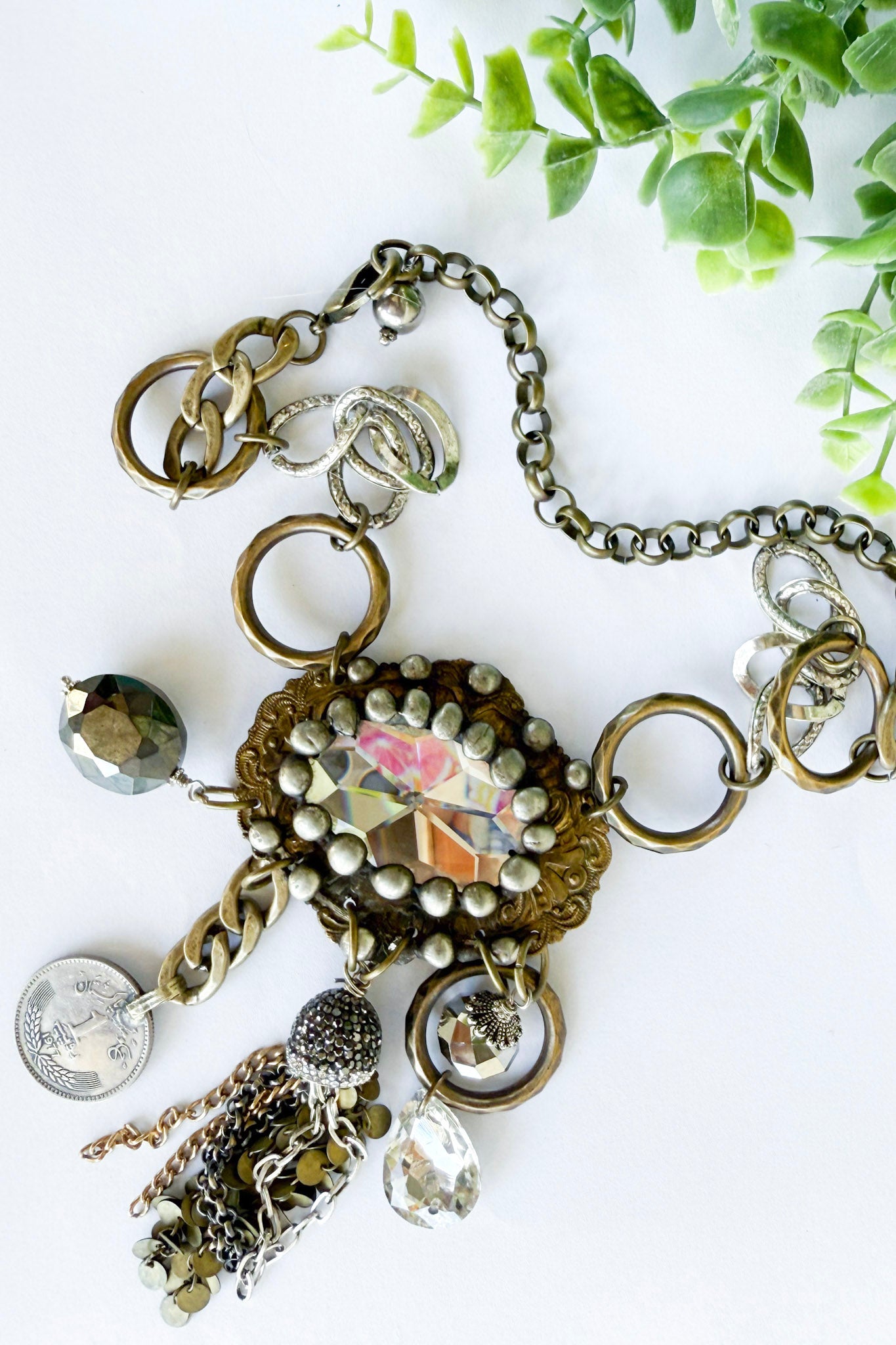 • A 4 inch large soldered crystal gem pendant.