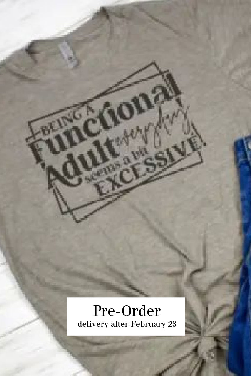 Being A Functional Adult Seems Excessive Tee in Gray