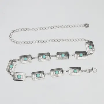 This Vintage Waist Chain in Silver Rectangle is the perfect accessory to add to any pair of bottoms, for the perfect on-trend bohemian style outfit! This is a silver chain belt adorned with silver medallions, and a hook clasp. This belt is perfect to layer effortlessly over the waist or hips. Pair this belt on top of any pair of pants, jeans, a skirt, or even a dress, to provide an effortless & trendy touch!