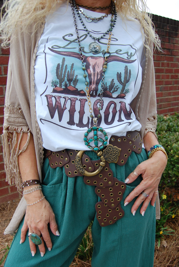 This Atmospheric Retro Copper Belt in Coffee is the perfect accessory to add to any pair of bottoms, for the perfect on-trend bohemian style outfit! Channel retro vibes with our Atmospheric Retro Copper Belt in Coffee! This statement piece features a series of eye-catching leaf leather elements with intricate eyelet details, giving your look a cool, bohemian edge. Perfect for cinching dresses or adding flair to jeans, this belt brings a nostalgic 90s feel with a modern twist. The perfect accessory to elevate your style!
