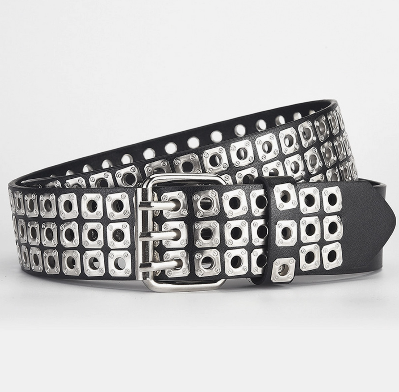 This Rivet Punk Belt in Black/Light Silver is the perfect accessory to add to any pair of bottoms, for the perfect on-trend bohemian style outfit! This is a silver leather belt adorned with metal rivets, and a 3 prong buckle. This belt is perfect to layer effortlessly over the waist or hips. Pair this belt on top of any pair of pants, jeans, a skirt, or even a dress, to provide an effortless & trendy touch!