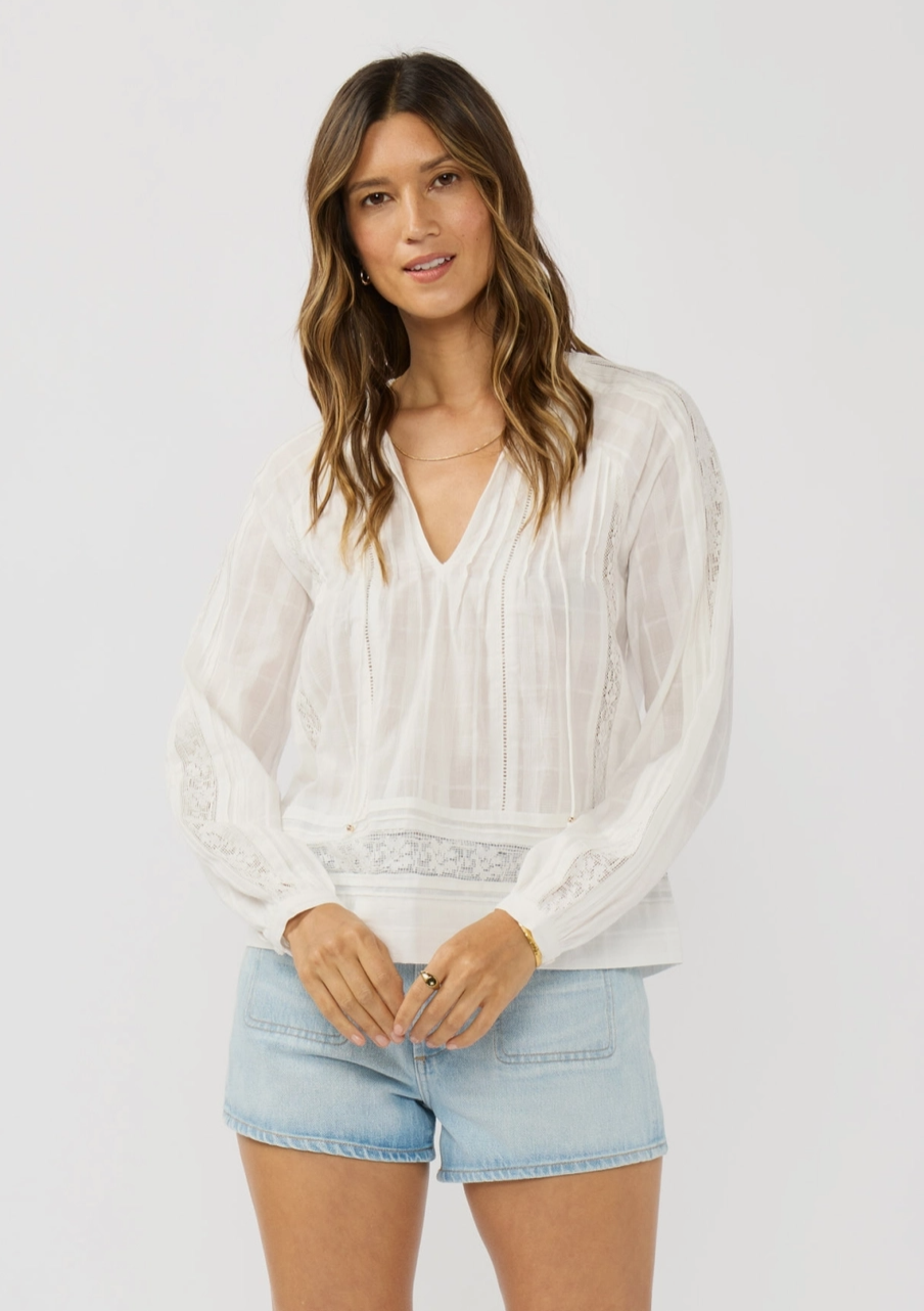 This Lena Lace Trim Top in White contains 100% Cotton material.