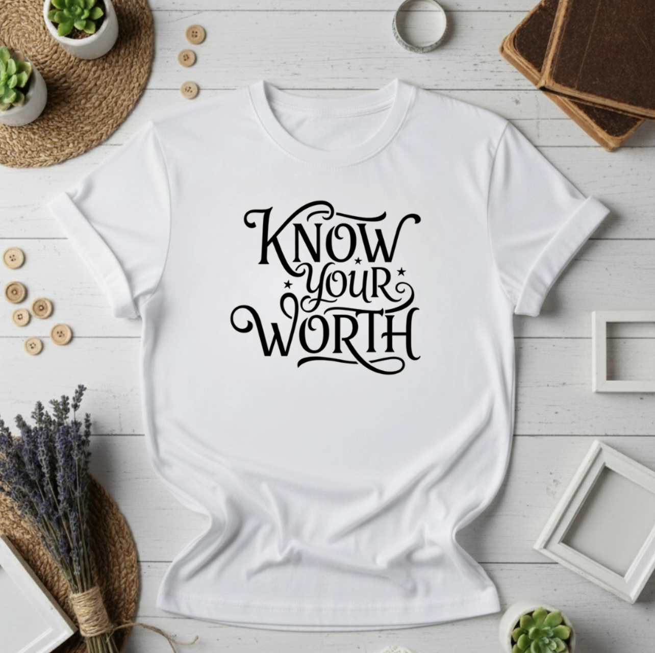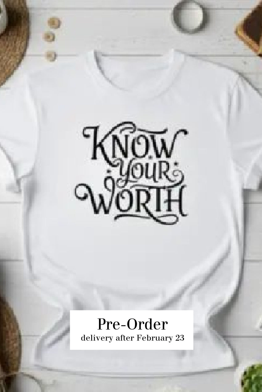 This Know Your Worth Graphic Tee in White is the perfect stylish outing top to style with any outfit. Know Your Worth Graphic Tee in White is trendy and stylish, with a soft and lightweight texture. You can pair this top under any kimono, cardigan, or jacket.