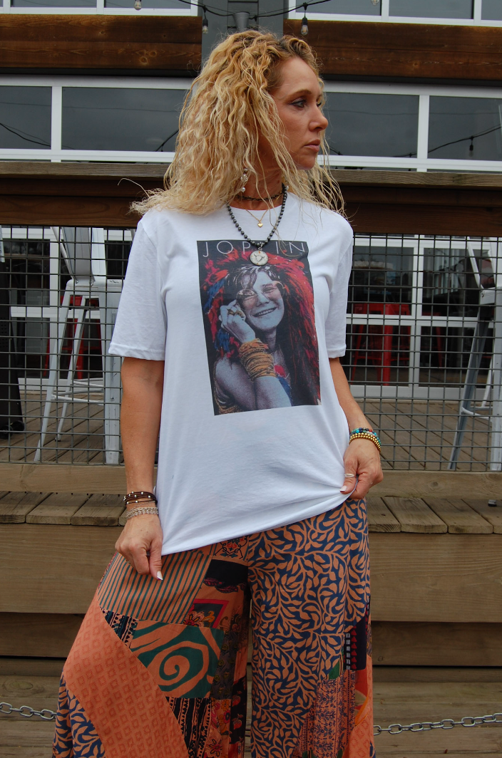 This Joplin Rock & Roll Classic Concert Band Tee in White is the perfect stylish outing top to style with any outfit. Joplin Rock & Roll Classic Concert Band Tee in White is trendy and stylish, with a soft and lightweight texture. You can pair this top under any kimono, cardigan, or jacket.
