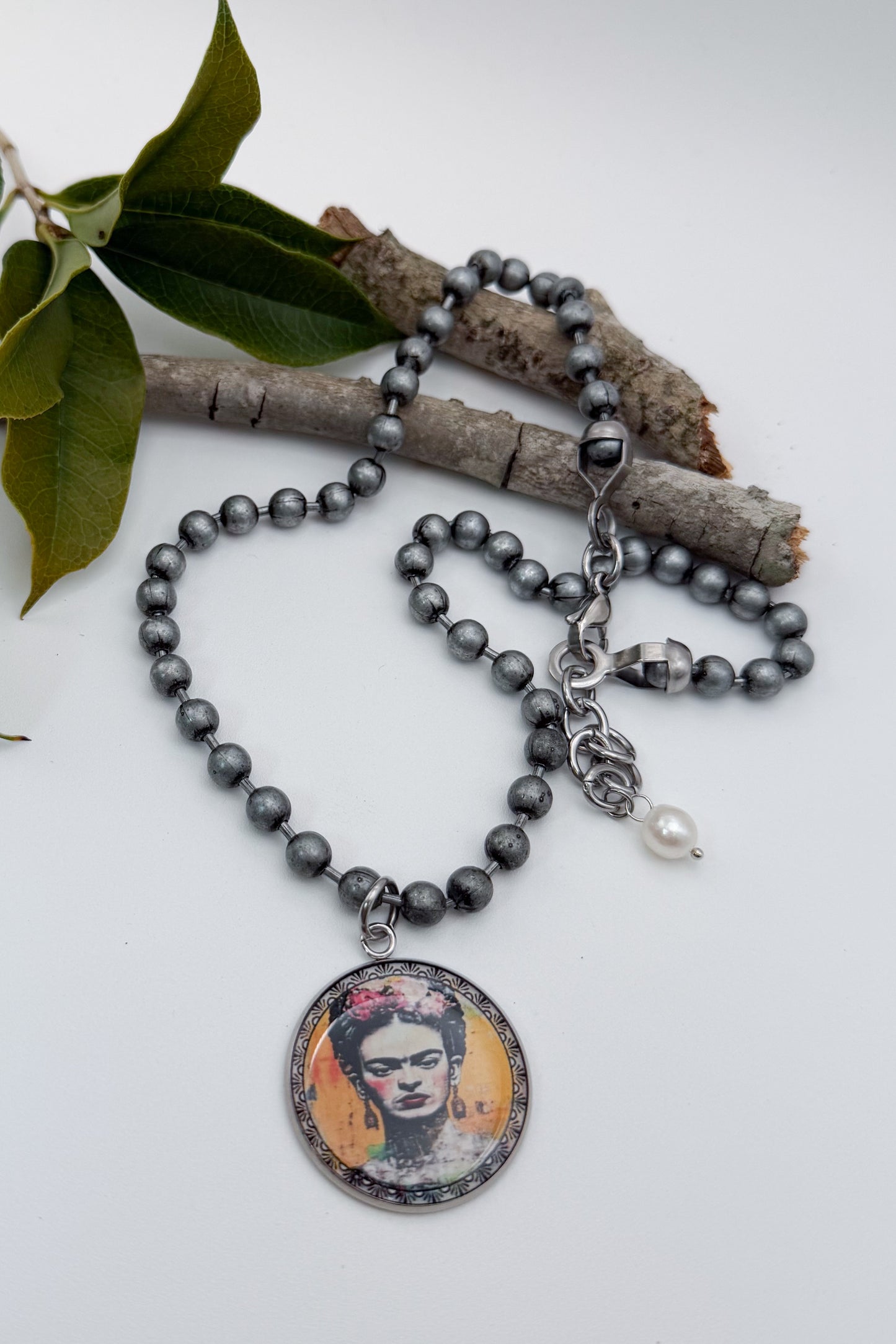 Frida Large Circle Distressed Pendant Necklace