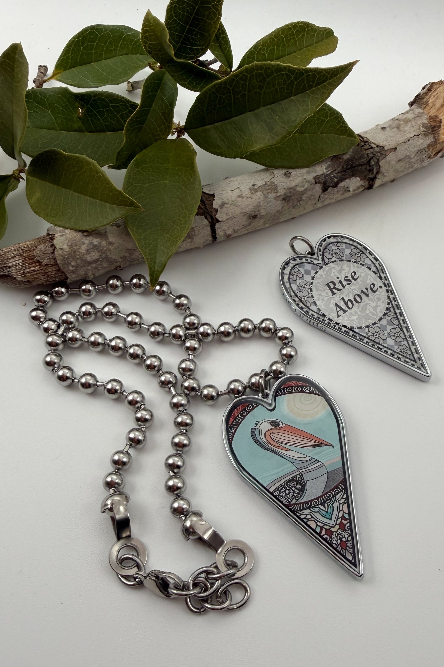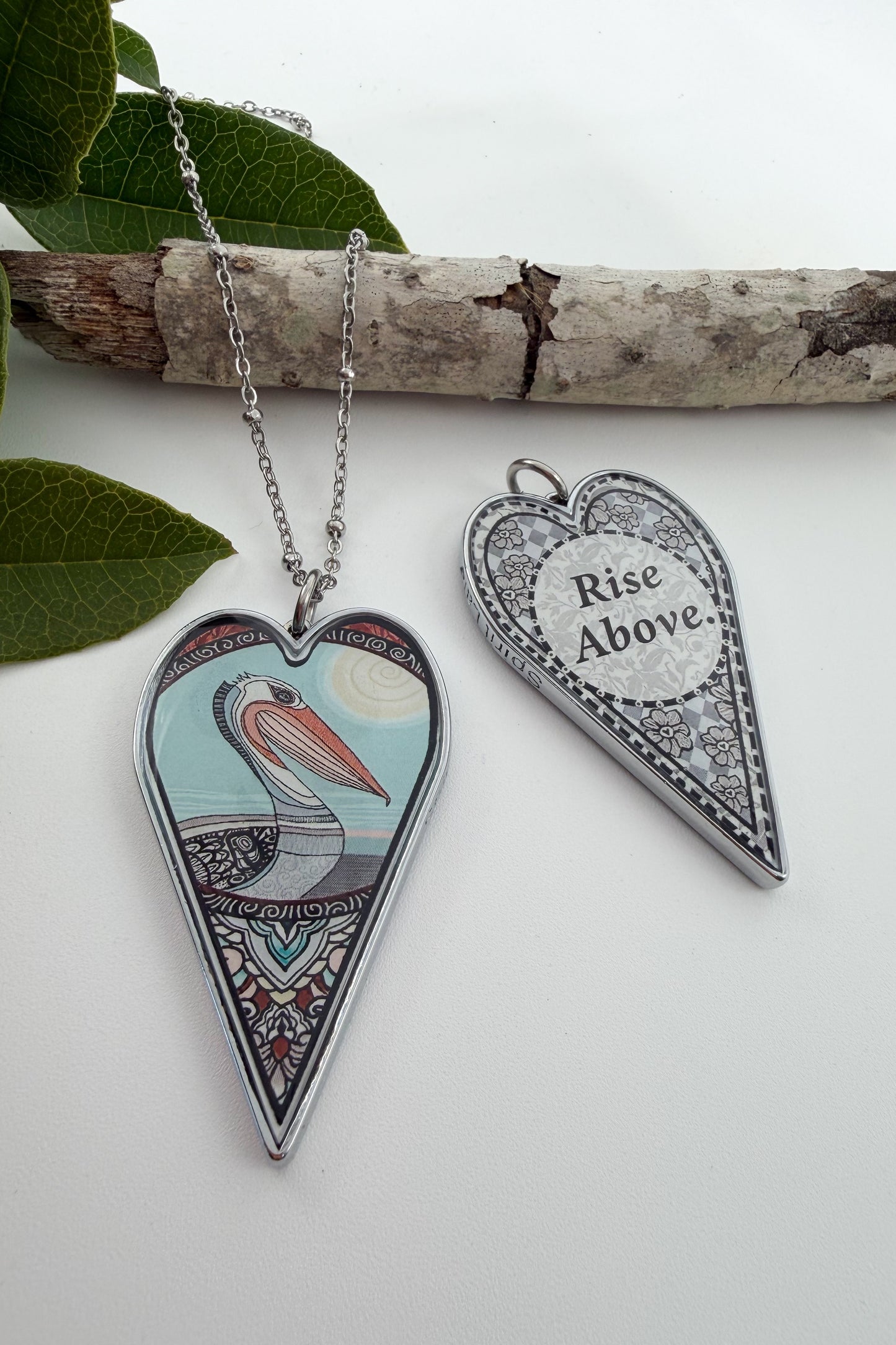 Spirit Lala: Large Pelican Heart Pendant Necklace
