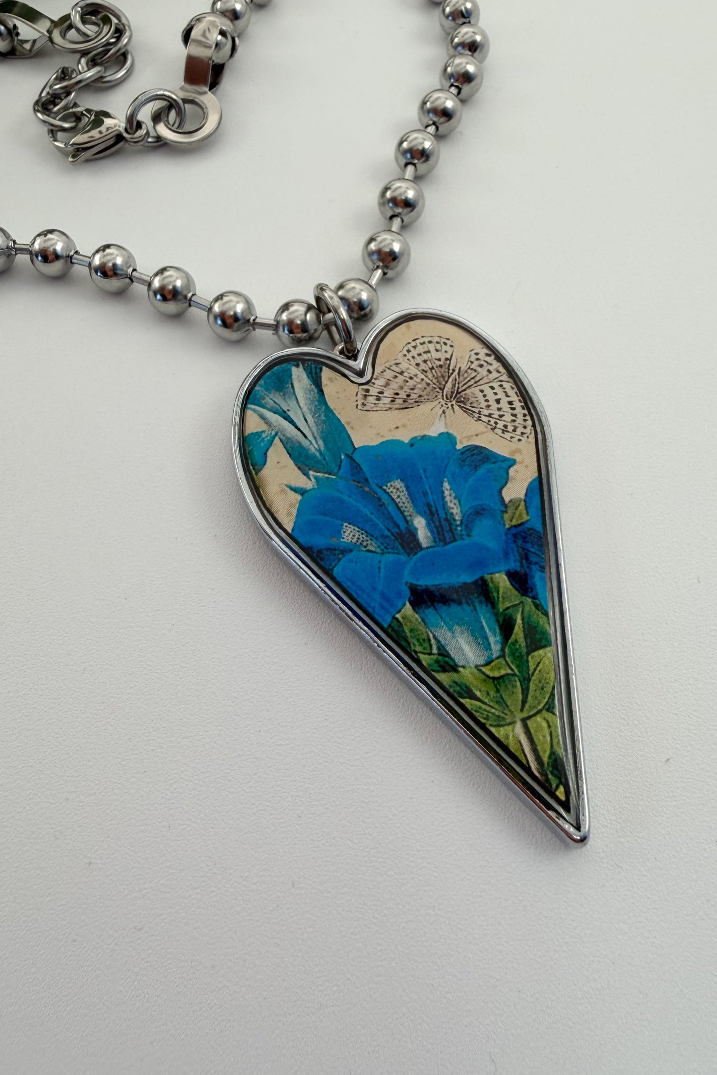 • A 2" long by 1-1 & 1/2" wide (including the stainless-steel jump ring) x 1/8" thick heart, hand resined, pendant.