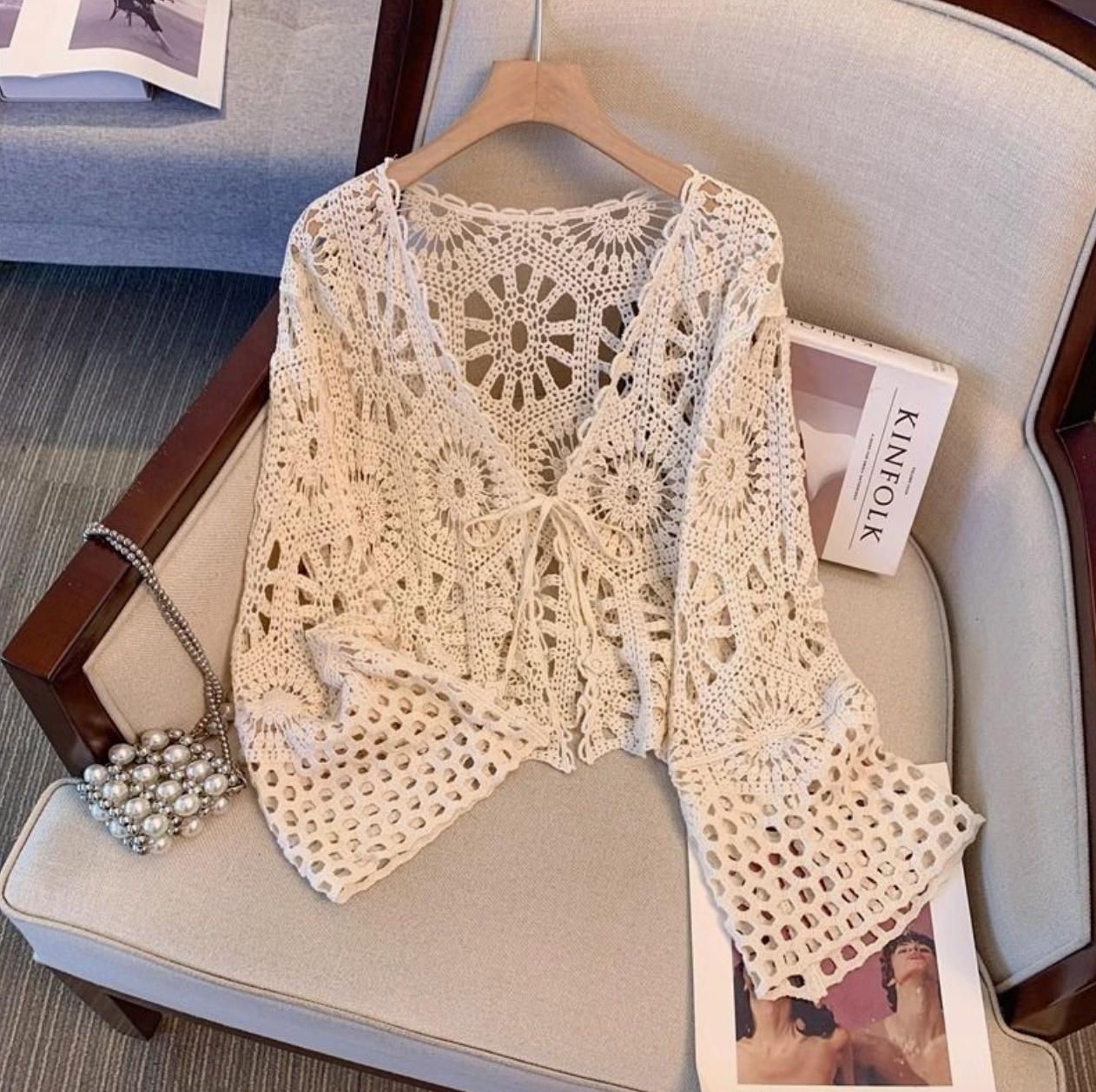 To maintain quality, this Irie Knit Cover Up in Beige is best when washed in cold water and hung dry. Low ironing if needed!
