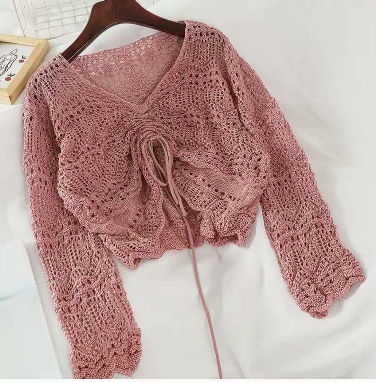 This Syd Knit Coverup In Rose is the perfect stylish statement piece to add to your closet, and or any on-trend bohemian style outfit! Giving you a crochet fabric detail and a v-neck style, and a drawstring detail, you can pair this top under any kimono, jacket, or cardigan! It's designed for durability, providing an ideal combination of comfort, stretch, and breathability.