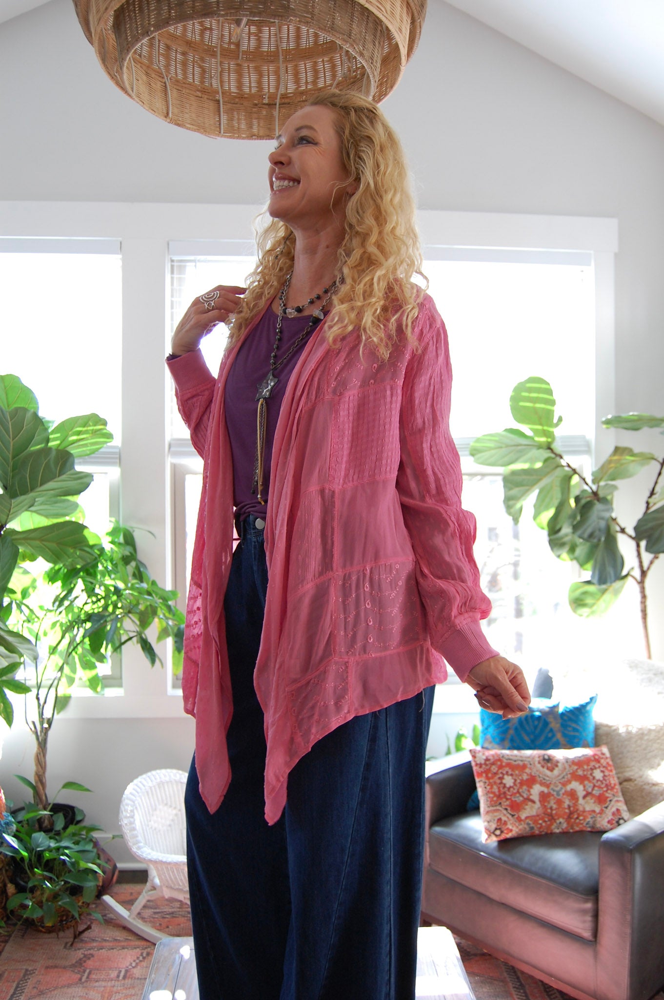 To maintain quality, this Juno Kimono Cardigan in Plum is best when washed in cold water, with like colors, and hung dry. Low ironing if needed!